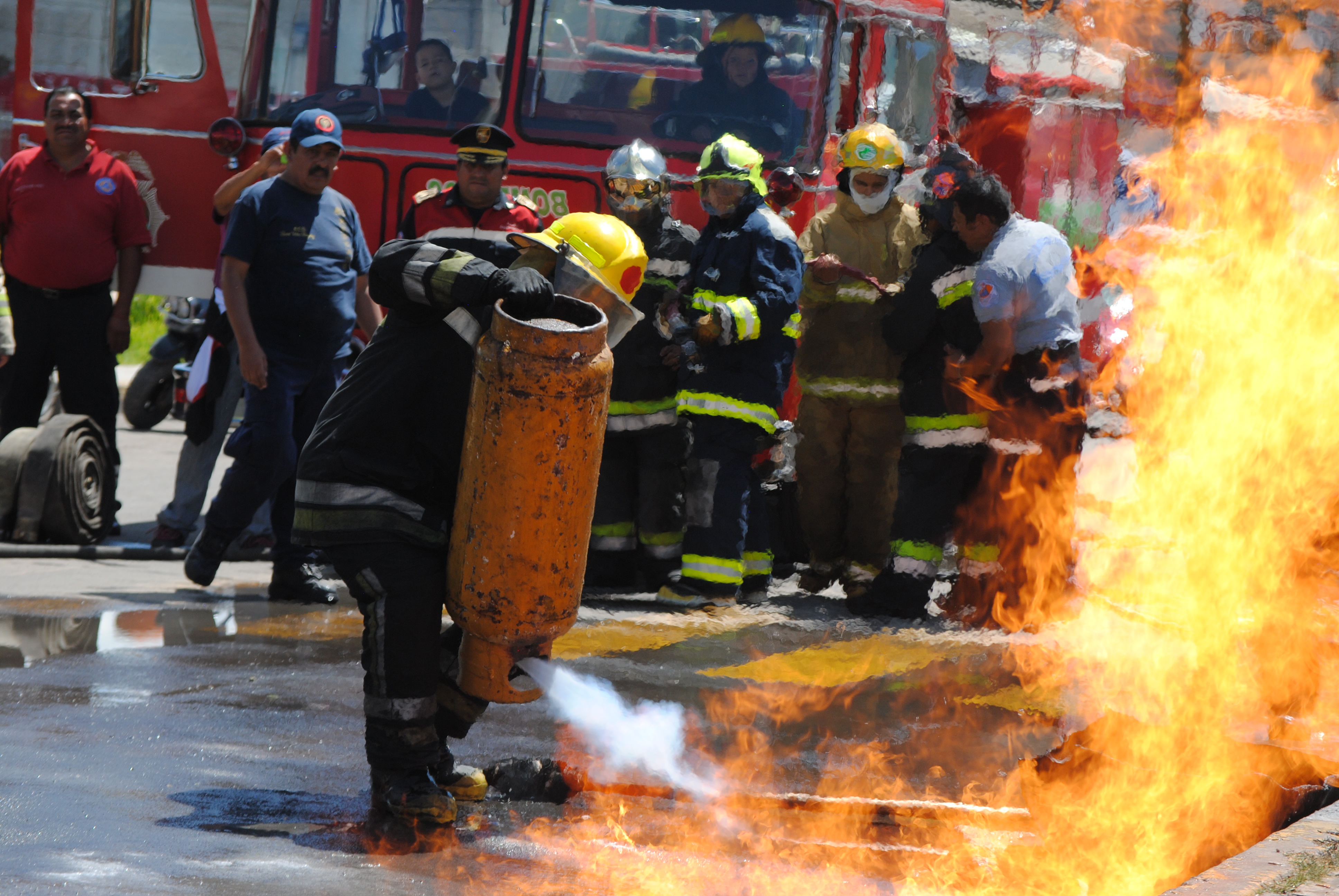 La práctica de bomberos duró alrededor de tres horas mostrando la gallardía y coraje para ofrecer un servicio de calidad.
