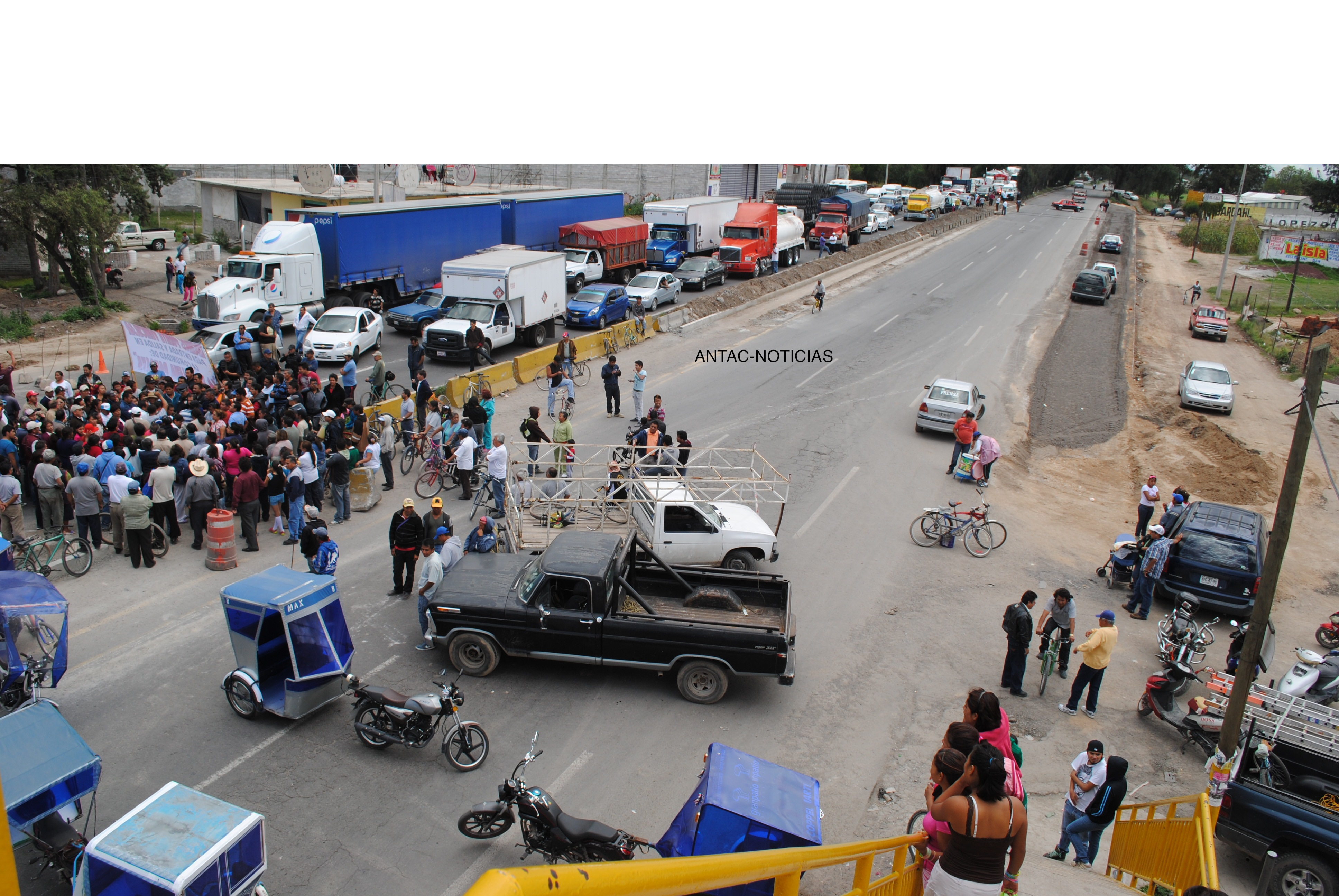 Más de cien habitantes de la comunidad de La Magdalena Panoaya, en el municipio de Texcoco, bloquean la carretera Lechería-Texcoco en la entrada principal de esta comunidad para exigir a las autoridades municipales, estatales y federales paren los trabajos de ampliación de la misma avenida.