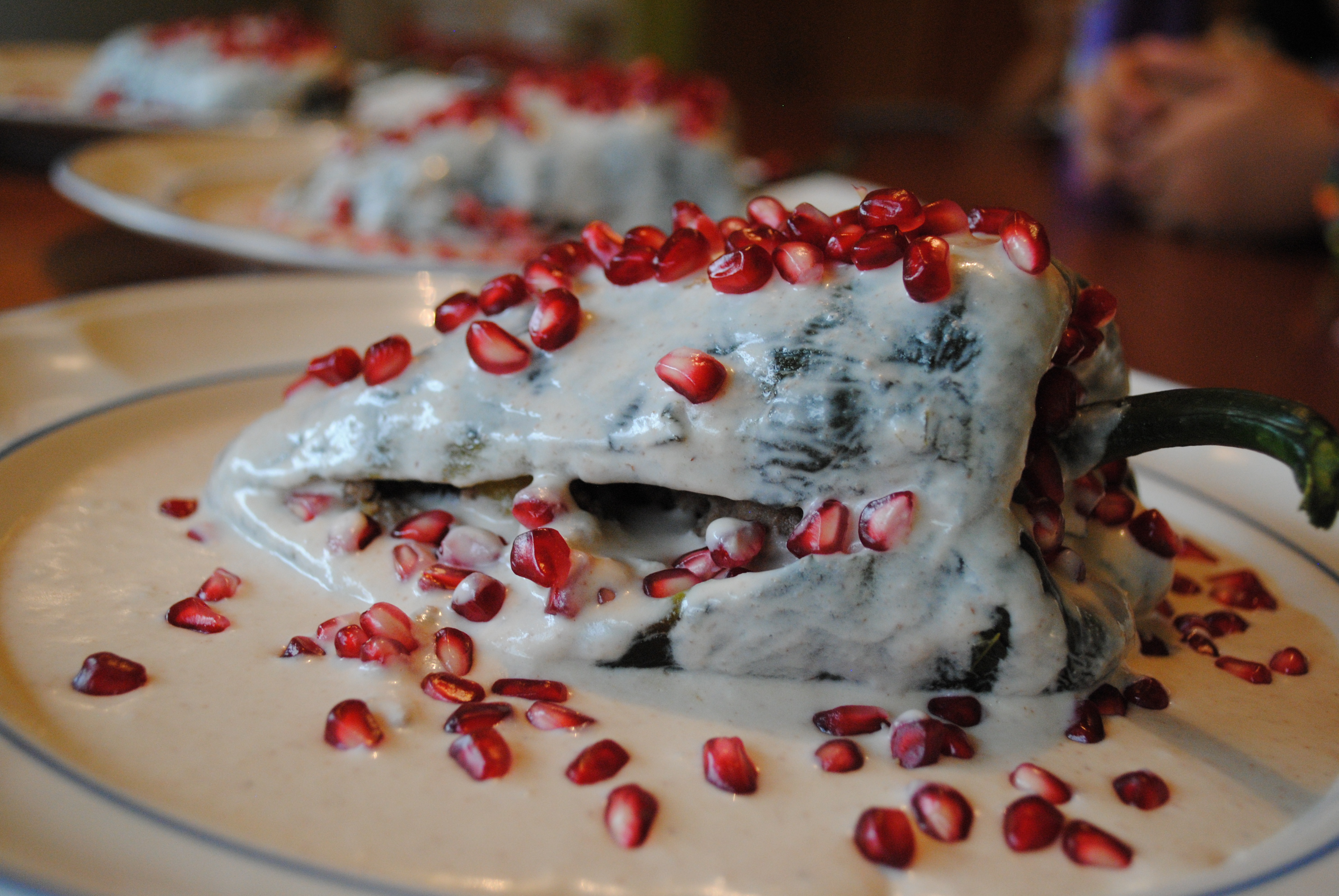 A la llegada de Agustín de Iturbide al estado de Puebla, para dirigirse a la entidad veracruzana a signar el Acta de Independencia de México, fue recibido en el convento de Santa Mónica para celebrar su aniversario en donde las monjas del lugar prepararon más de diez platillos y como postre le ofrecieron chiles poblanos rellenos con carne y frutas picadas, bañados de una salsa nogada con nuez de castilla, perejil, y por supuesto, granada.