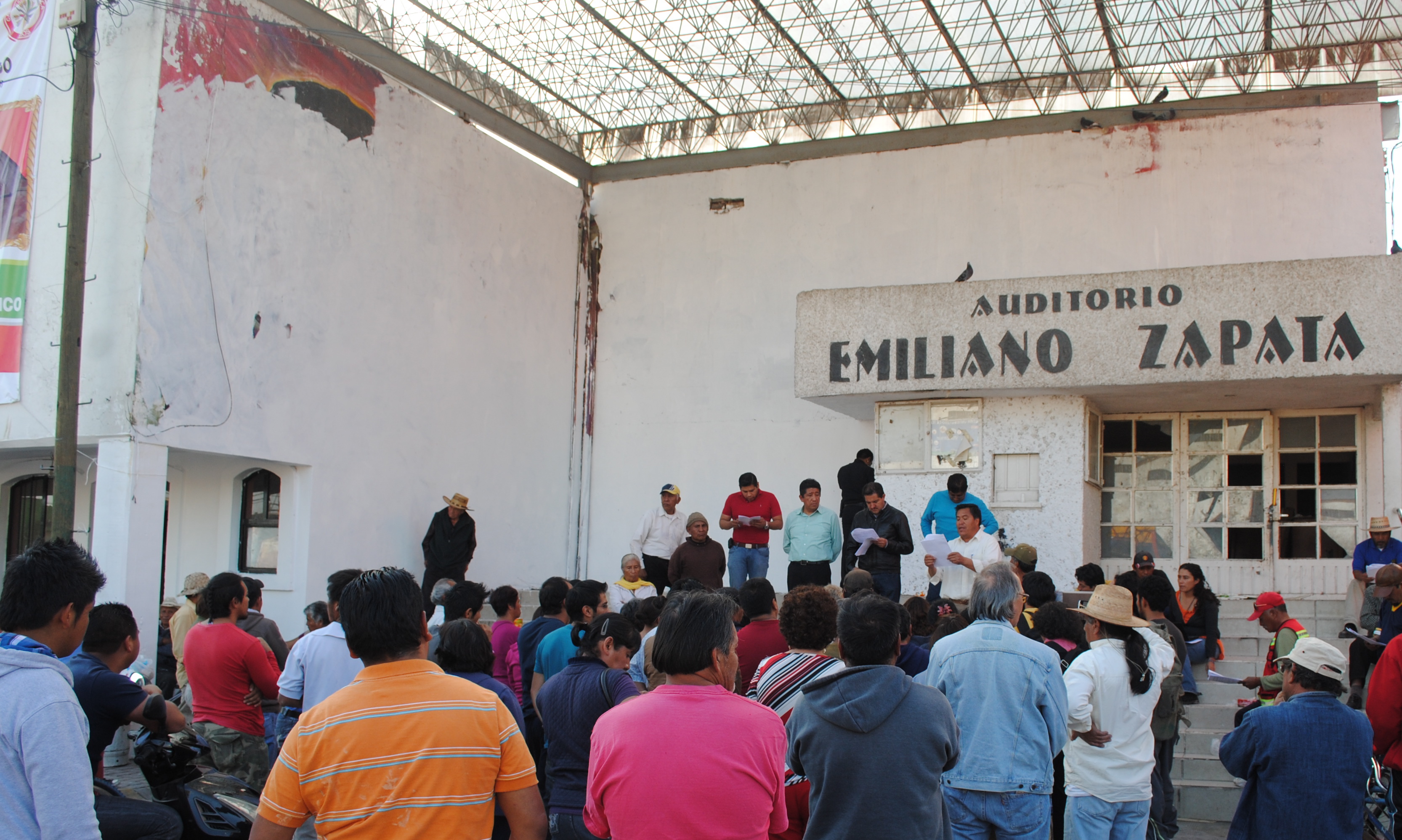 Al rededor de las tres de la tarde arribó al auditorio municipal «Emiliano Zapata», Ildefonso Silva Vega, presidente municipal para escuchar los reclamos de quienes integran el Frente de Pueblos en Defensa de la Tierra (FPDT) y lograr un acuerdo con líderes del movimiento.