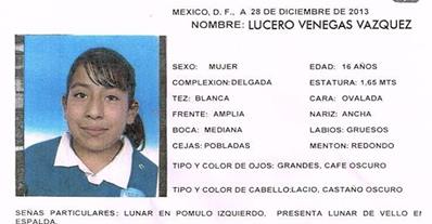 Lucero Venegas Vázquez originario de la comunidad de Huexotla en el municipio de Texcoco desapareció el pasado 28 de diciembre estando en su domicilio, sin dejar rastro de su ausencia.