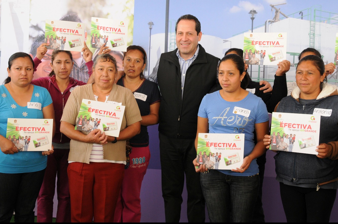 Tras la inauguración de las plantas tratadoras, el gobernador mexiquense hizo entrega de apoyos económicos a madres de familia a través de una tarjeta electrónica, la cual podrán usar exclusivamente para administrar la despenda familiar.