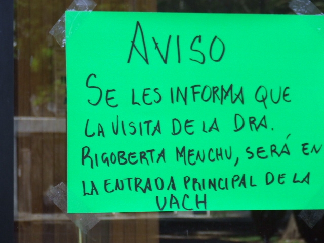 La Universidad Autónoma Chapingo (UACh), bajo la orden del rector Carlos Alberto Villaseñor Perea dio portazo para negar la entrada al campus universitario a Rigoberta Menchú Tum, Premio Nobel de la Paz 1992, para dictar la conferencia «El empoderamiento de la mujer dentro del desarrollo económico y social actual».