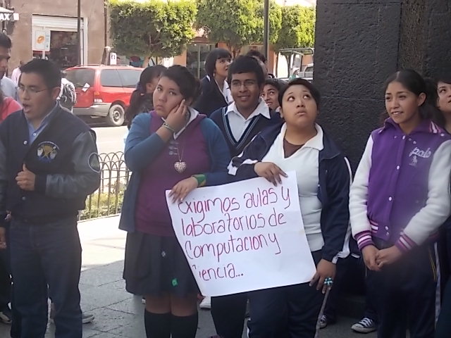 Desde temprana hora, varias escuelas, con alumnos de una primaria; una secundaria de nombre (Izcoatl) y una preparatoria (la 235), de colonias antorchistas asentadas de manera irregular en este municipio, arribaron al Palacio Municipal y colocaron sus bocinas, en donde de inmediato, al más puro “cliché” antorchista, empezaron a enunciar sus demandas, pero se supone que a esa hora deberían de estar en sus aulas de clase tomando sus asignaturas, en un día hábil y con las nuevas normas de la reforma educativa, en donde es “penado” que los alumnos y docentes sean sacados de sus escuelas para actividades que no tengan nada que ver con sus estudios.
