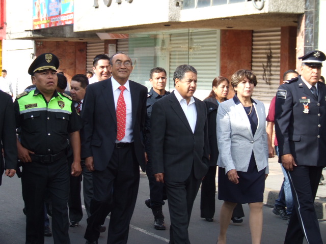 Posterior al evento cívico la comitiva se dirigió al inicio del desfile el cual fue encabezado por la propia alcaldesa, Delfina Gómez; el legislador local, Higinio Martínez; los comandantes tanto de la Policía Federal, como de la Secretaría de Seguridad Ciudadana, así como del Cabildo y diferentes directores de las áreas que conforman el Ayuntamiento de Texcoco, quienes al llegar al Palacio Municipal subieron al balcón central a presenciar el resto de éste.
