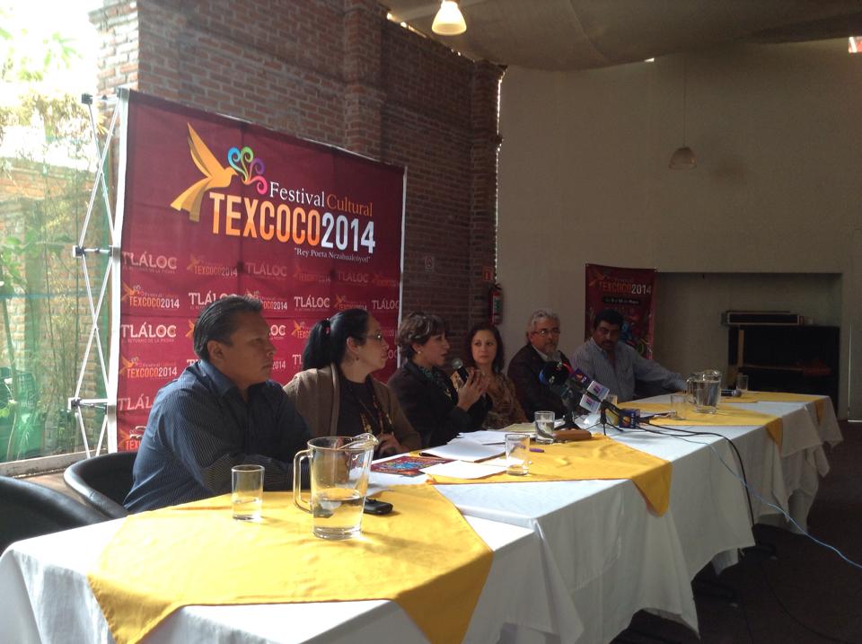 Esta mañana, Delfina Gómez Álvarez, presidenta municipal de Texcoco, junto con Azucena Cisneros Coss, directora de cultura de esta administración, presentaron el cartel que conformará la edición 2014 de Festival Cultural Rey Poeta Nezahualcóyotl, cuya programación está dirigida hacia la deidad Tláloc, como homenaje en el 50 aniversario de su traslado hacia la ciudad de México.