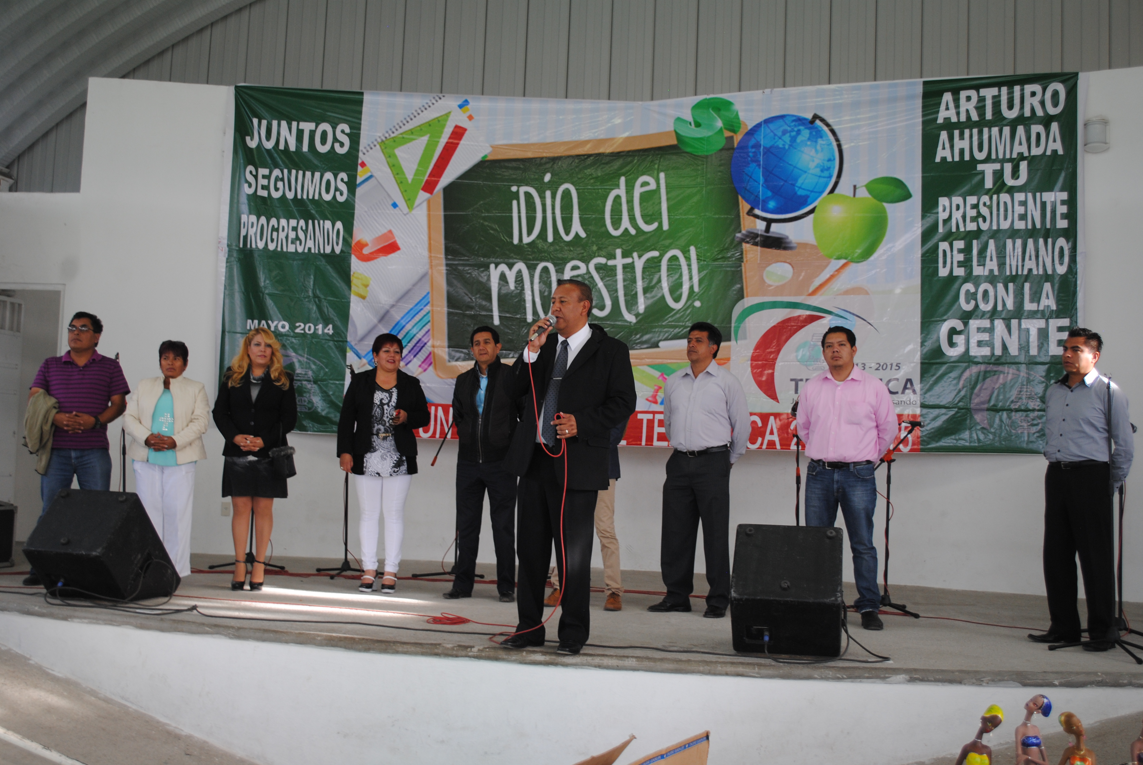 Arturo Ahumada Cruz, presidente municipal de Tezoyuca acompañado de su esposa Olivia Guerrero Morales, presidenta del DIF municipal junto con Demetrio Moreno Árcega, representante en la región del gobernador Eruviel Ávila Villegas, festejaron este inicio de semana a los maestros de la entidad en donde se cuenta con más de 30 instituciones educativas.
