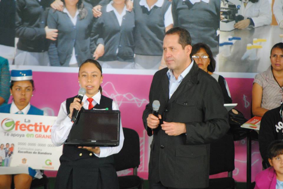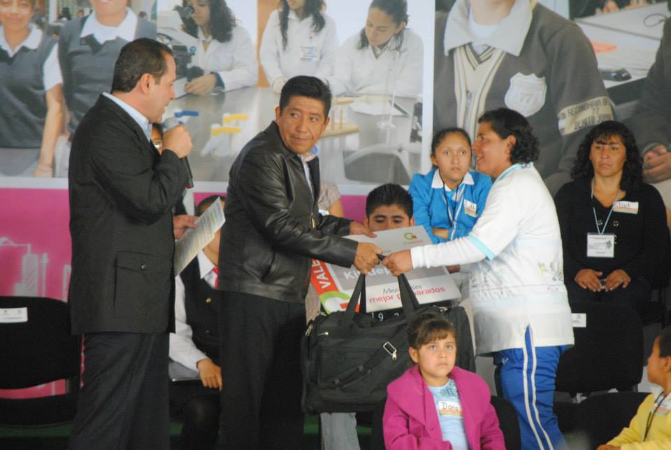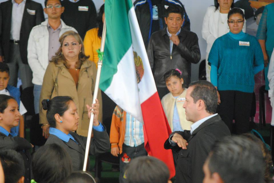 Eruviel Ávila Villegas, gobernador del estado de México hizo entrega de inmobiliario escolar en donde se construye la macroplaza bicentenario en la comunidad de Santa Rosa, perteneciente al municipio de Atenco.