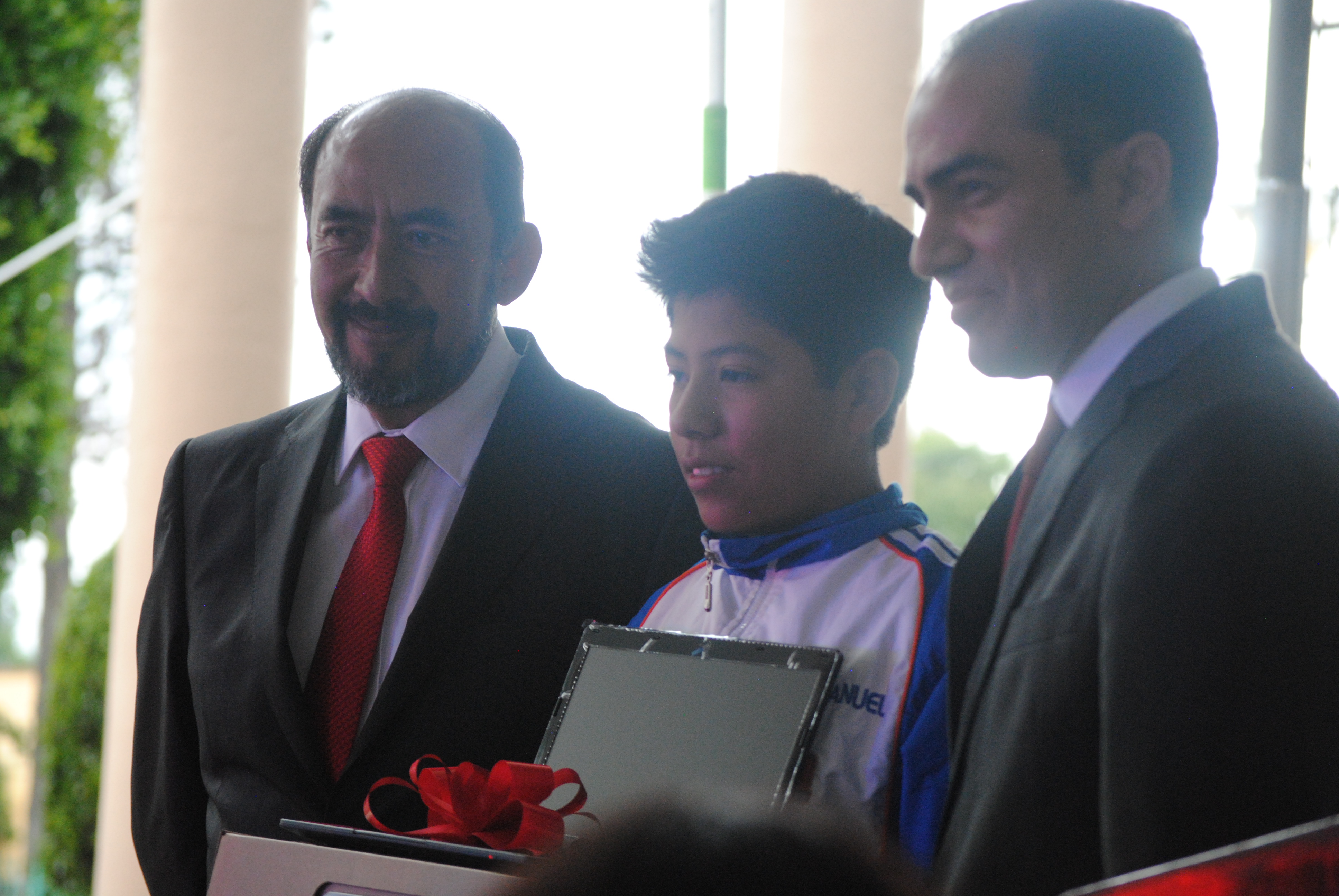Durante el evento, el presidente hizo entrega de lap top a estudiantes de excelencia así como las 200 becas que se entregan a alumnos universitarios chiautlenses.