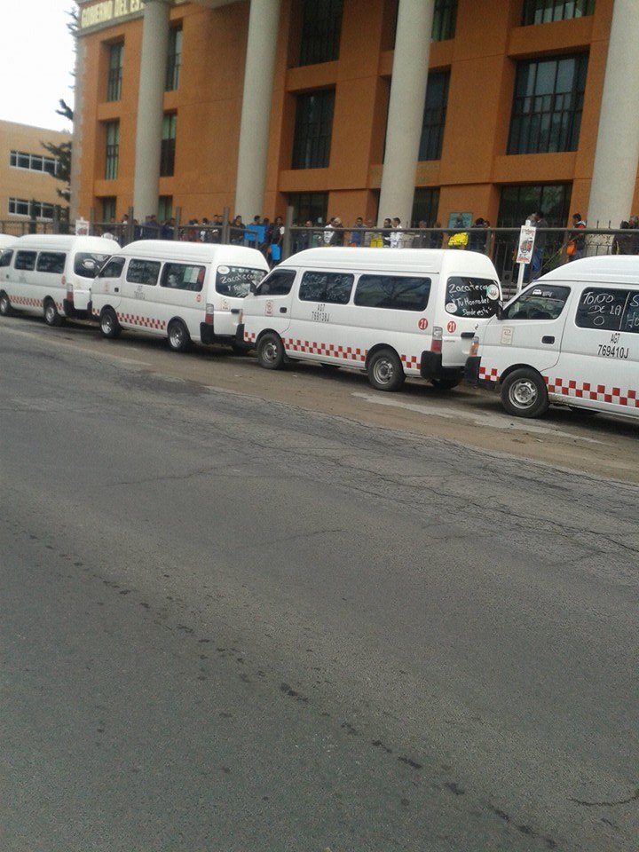 Más de 100 concesionarios de las líneas de transporte de los sitios Jardín de Texcoco y de la Ruta 94, realizan una manifestación afuera del Palacio de Justicia