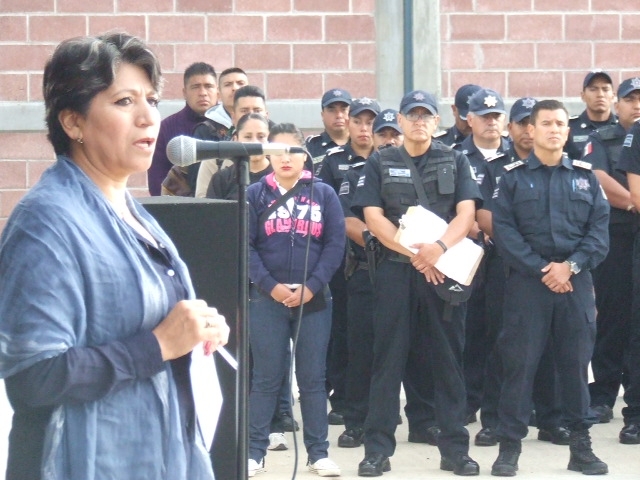 Finalmente, Delfina Gómez exhortó a los uniformados a seguir portando el uniforme con dignidad y honor, diciendo cero a la corrupción, ya que afirmó que con un solo elemento que incurra en estas anomalías se mancha el nombre de toda la corporación de la policía municipal y este gobierno municipal no lo va a permitir, tal como se ha demostrado con malos elementos a los que se les ha comprobado este tipo de faltas y que han sido dados de baja de manera fulminante.