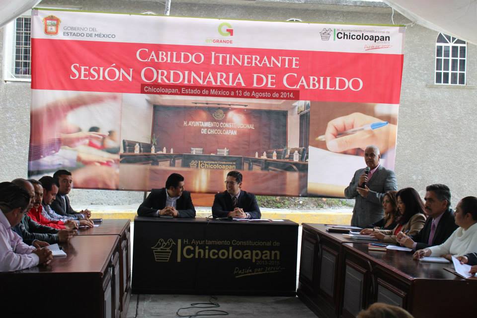 El Ayuntamiento de Chicoloapan que preside Andrés Aguirre Romero, puso en marcha el primer “Cabildo Itinerante” en la colonia Auris I, llevándose a cabo la LXXVIII sesión ordinaria de cabildo y siendo la primera de manera itinerante, el cuerpo de edilicio aprobó la firma de convenio de comodato de los 19 inmuebles pertenecientes a este municipio para la instalación de los “comedores comunitarios” así como el nombramiento del secretario técnico de seguridad ante el sistema estatal de seguridad pública.