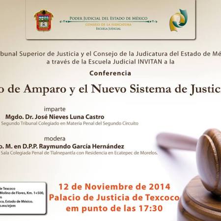 9 noviembre, 2014 Antac Noticias Impartirán conferencia «El juicio de amparo y el nuevo sistema de justicia penal» en Palacio de Justicia Texcoco
