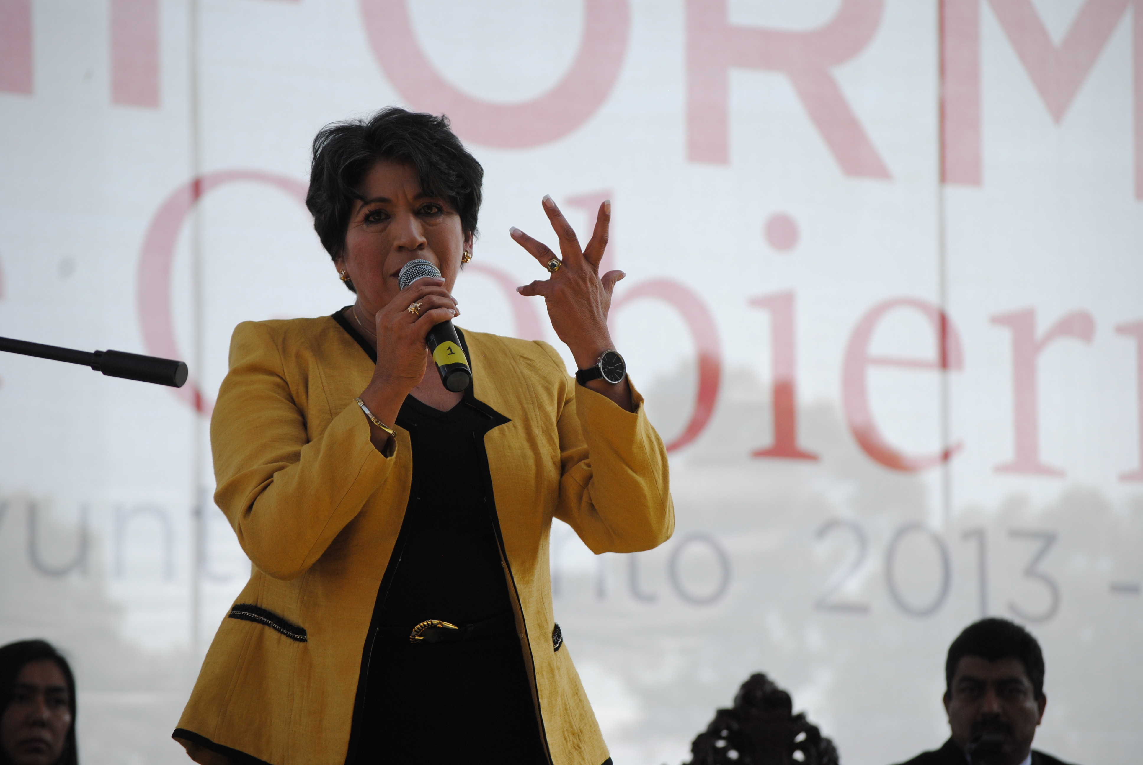 Delfina Gómez Álvarez, presidenta municipal de Texcoco, rechazó enérgicamente las protestas encabezadas por líderes antorchistas durante su segundo informe de gobierno en las instalaciones del deportivo «Silverio Pérez».