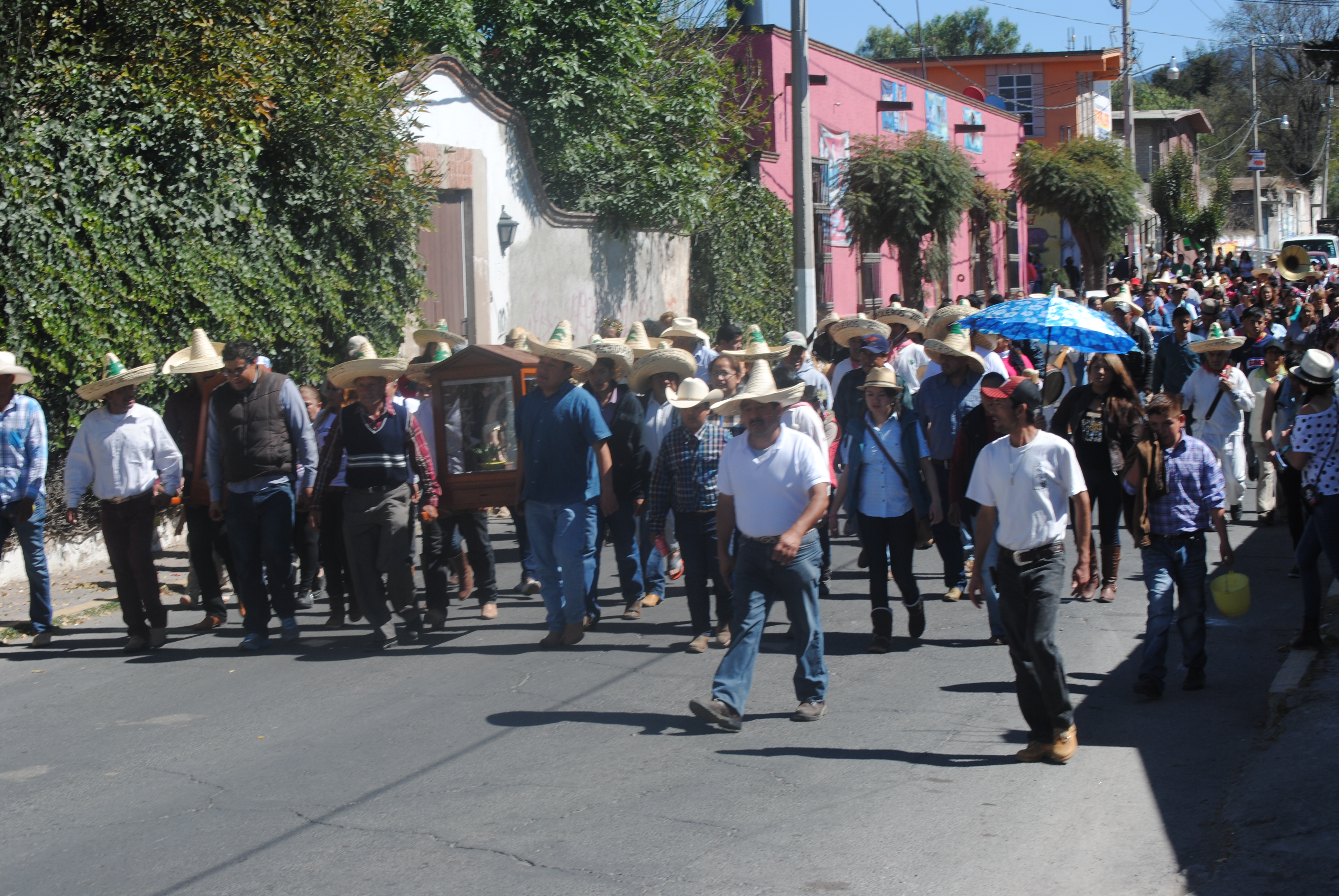 Con la terminación de la misa conmemorativa a esta fecha, la mayordomía de los tlachiqueros recorrieron la avenida principal acompañados de música y habitantes del municipio para llegar al lugar donde compartirían los alimentos para después realizar el tradicional tributo a esta actividad en la producción del pulque.