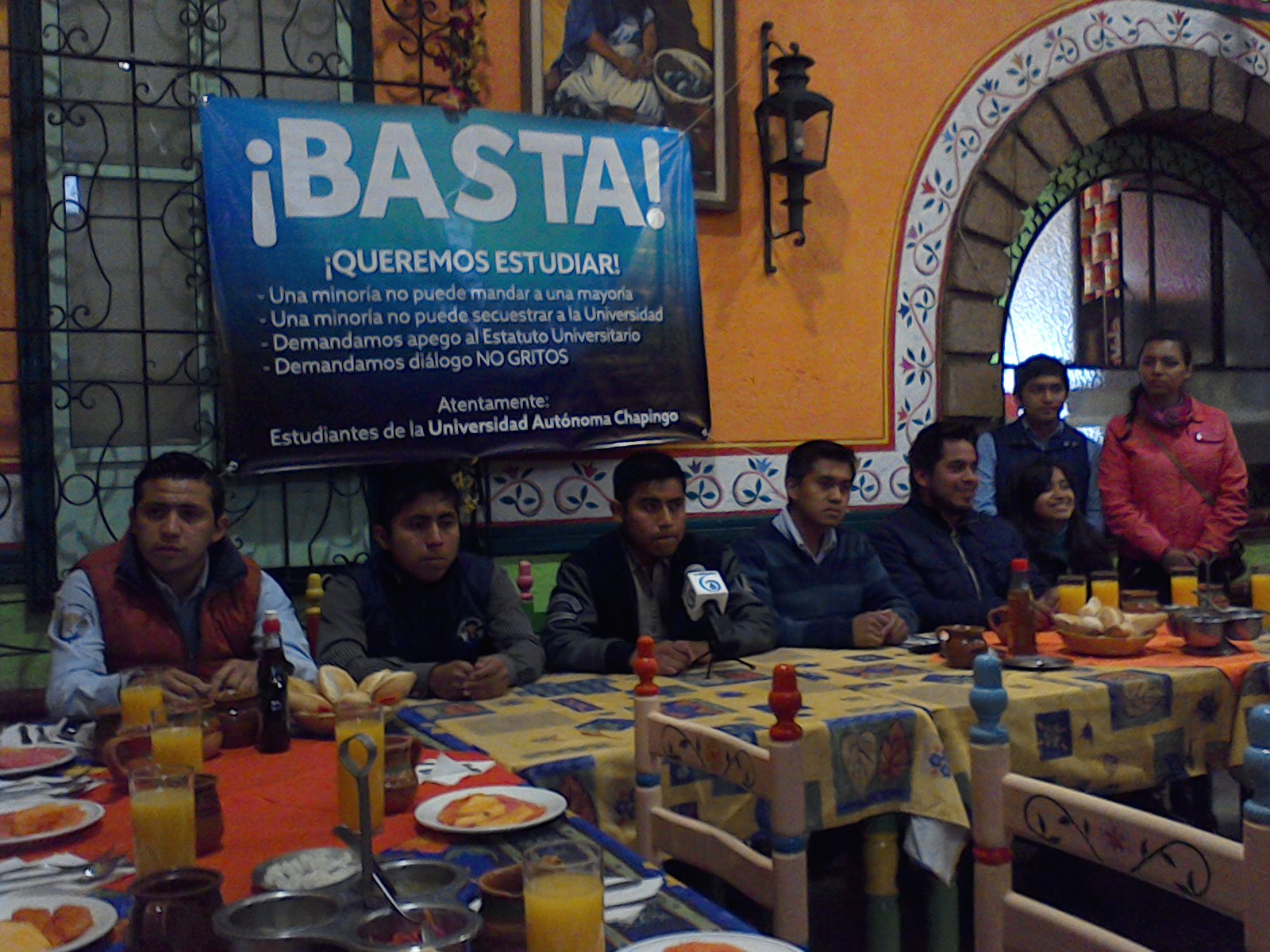 Esta mañana estudiantes de la Universidad Autónoma Chapingo (UACh), en conferencia de prensa anunciaron su inconformidad ante el cierre de la universidad por un grupo minoritario, «llevamos más de dos semanas sin actividad y cada día que pasa es un retroceso en muchos campos».