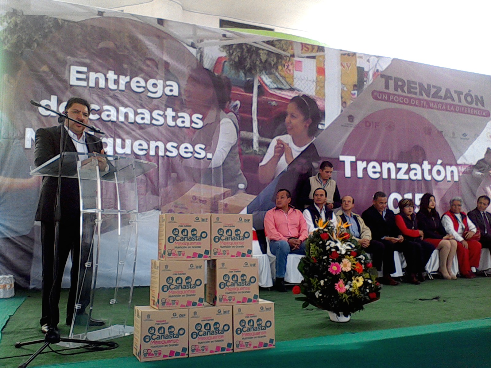 Este fin de semana Juan José Medina Cabrera, presidente municipal de La Paz, en coordinación con el DIF, Difem, Diputación Federal y gobierno estatal, entregaron canastas mexiquenses, lentes a adultos mayores e inició el programa estatal Trenzatón 2015, el cual consiste en recolectar cabello para la elaboración de pelucas oncológicas para ayudar a personas con cáncer.