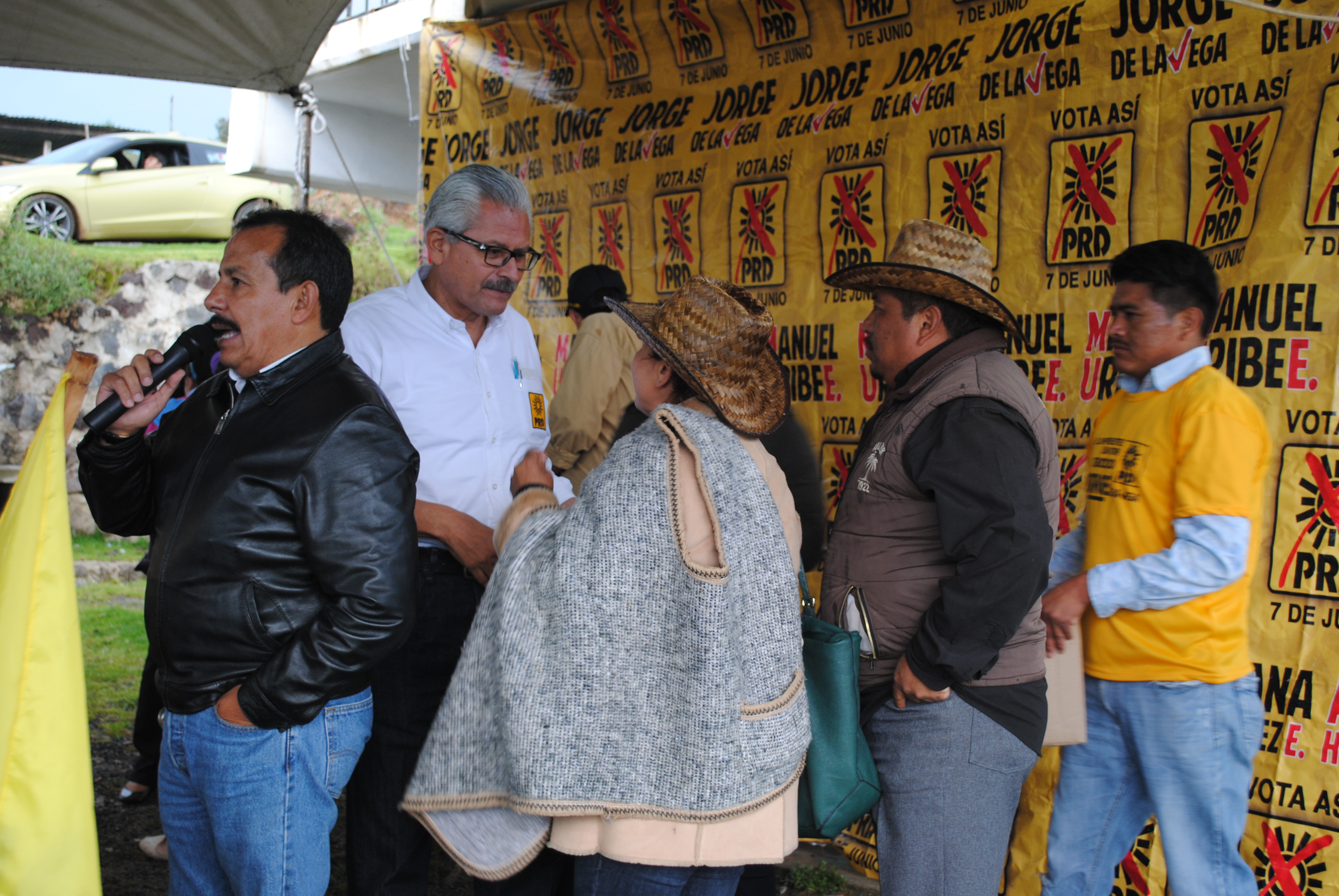 Jorge De la Vega Membrillo candidato a la alcaldía de Texcoco por el partido del sol azteca en su gira por comunidades de la zona de la montaña como la Colonia Guadalupe y San Jerónimo Amanalco exhortó a los más de cien y trecientos asistentes respectivamente a proteger sus tierras de la invasión de Antorcha.