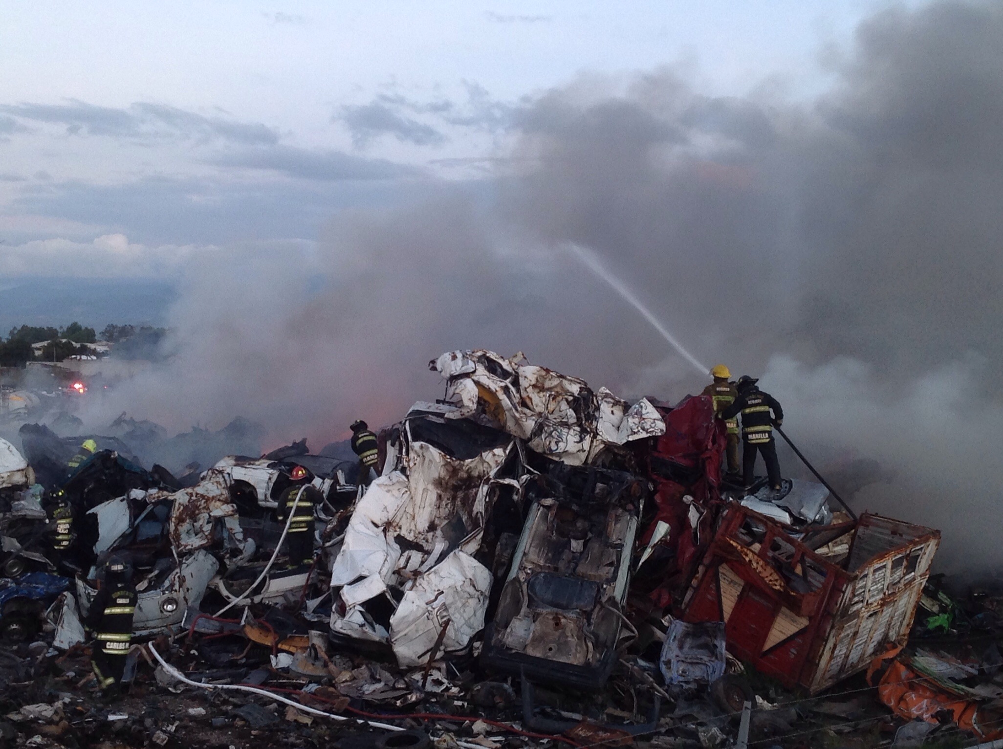Entre vehículos chatarra los vulcanos hicieron su heroica labor que los caracteriza para controlar las llamas que por más de cuatro horas se extendió debido a los gases que desprenden los tanques de gasolina en desuso.