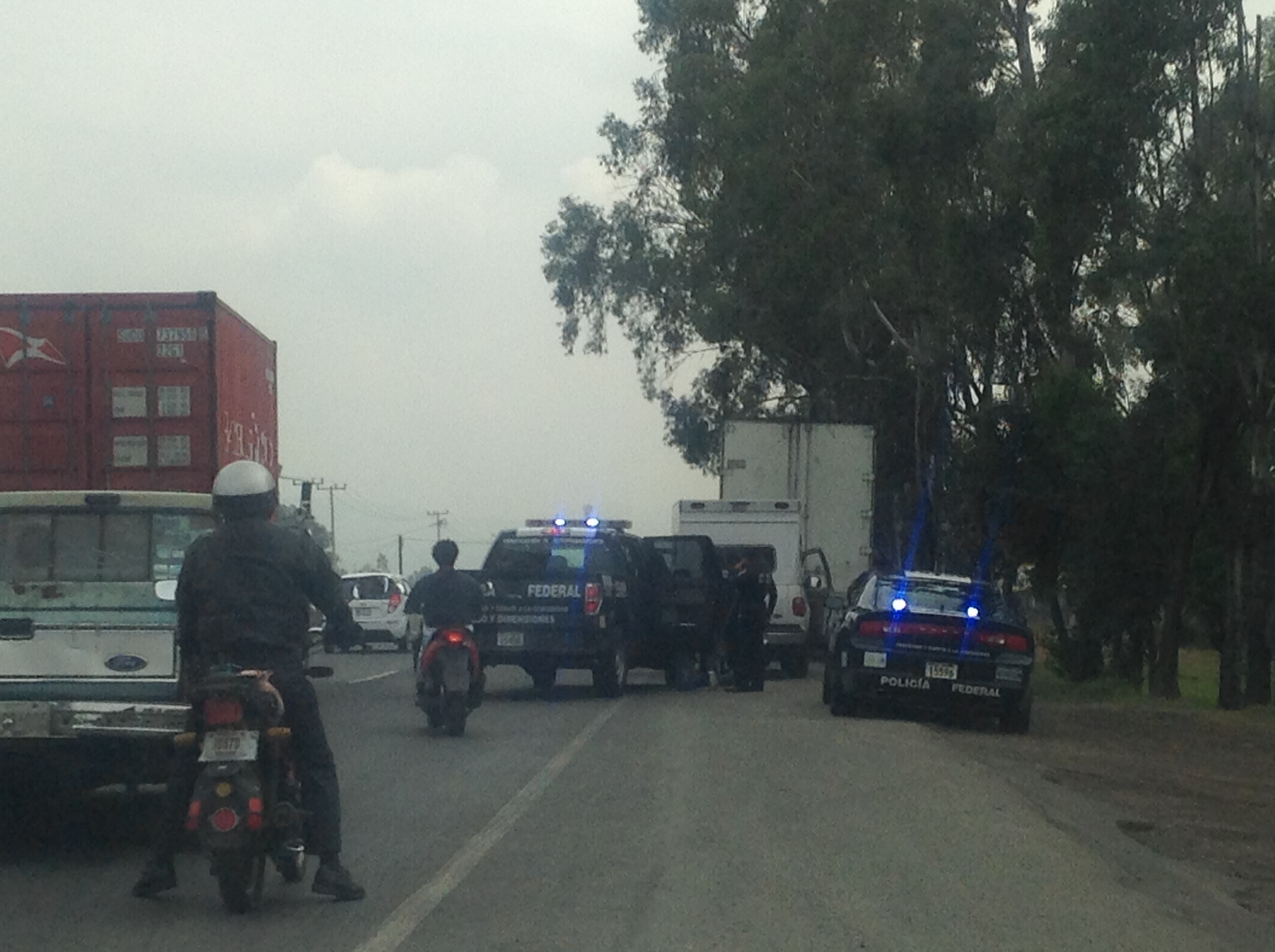 Una camioneta blanca con camper fue detenida hace treinta minutos (11:20) por elementos de la Policia Federal destacamentoTexcoco donde se convirtió en persecución dando alcance sobre la carretera México-Zacatepec a un costado de la Feria del Caballo, donde fueron al menos sometidos dos sujetos del sexo masculino entre 25 y treinta años.