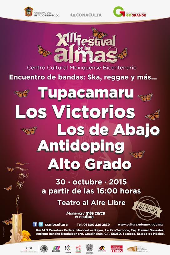 El Gobierno del Estado de México a través de la Secretaria de Cultura llevan a cabo en el Centro Cultural Mexiquense Bicentenario (CCMB) -por tercera ocasión- el XIII Festival de las Almas del 30 de octubre al 7 de noviembre, en el que se realizaran diversas actividades culturales donde se resaltará la tradición e identidad mexiquense que rodea la festividad del Día de Muertos.