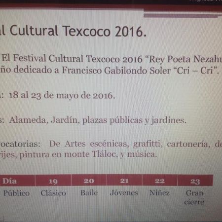 Presupuesto para las actividades del próximo Festival Cultural Texcoco 2016