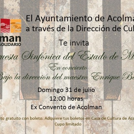 Ofrecerá concierto Orquesta Sinfónica del Estado de México en Acolman