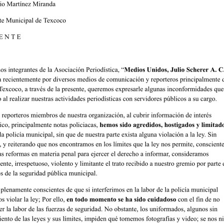 Carta abierta al gobierno municipal de Texcoco