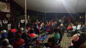 Sandra Luz Falcón Venegas, candidata de Morena a la presidencia municipal de Texcoco durante su visita en la comunidad de La Resurrección, anunció su compromiso de terminar los tres años de gobierno al asegurar que se lo merece Texcoco y por «razones especiales la profesora Delfina Gómez tras un proyecto se ausentó de la administración municipal y del doctor Higinio Martínez de tener la misión de trabajar con Andrés Manuel López Obrador», y aseguró que «va a ganar Andrés Manuel el próximo primero de julio y si ya llegó, ya no hay que lucharle, más bien contribuir y terminar el periodo como debe de ser».