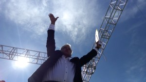 También anunció que tras el triunfo de la elección y la entrevista que tenga con el presidente Peña informará para presentar opciones y abrir un debate público y tomar la opción donde sea el pueblo quien decida la construcción del aeropuerto internacional.