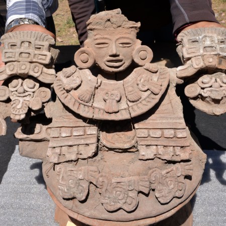 Localizan un brasero de estilo teotihuacano, con representaciones de Tláloc, en la Ex Hacienda de Xico