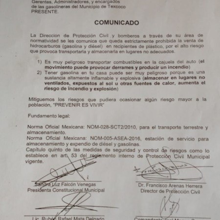 PROTECCIÓN CIVIL DE TEXCOCO ADVIERTE POR RIESGOS EN VENTA DE COMBUSTIBLE EN ENVASES NO ADECUADOS