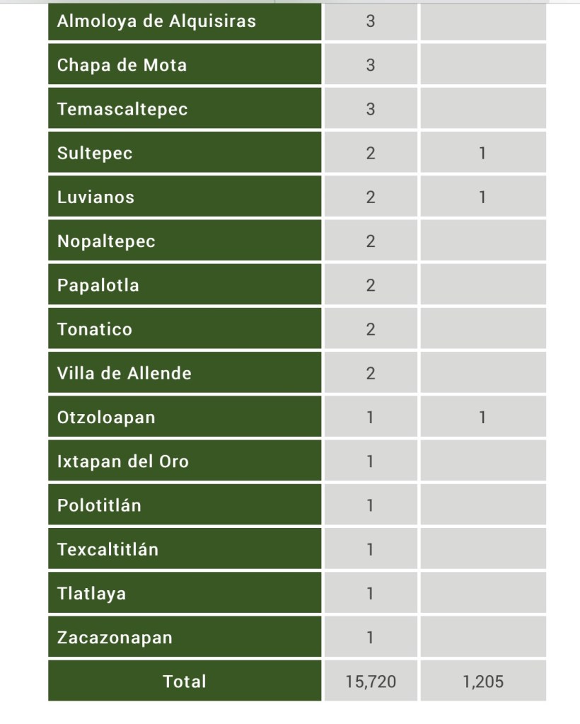 . Otumba 26 y 5 defunciones, (se mantiene).