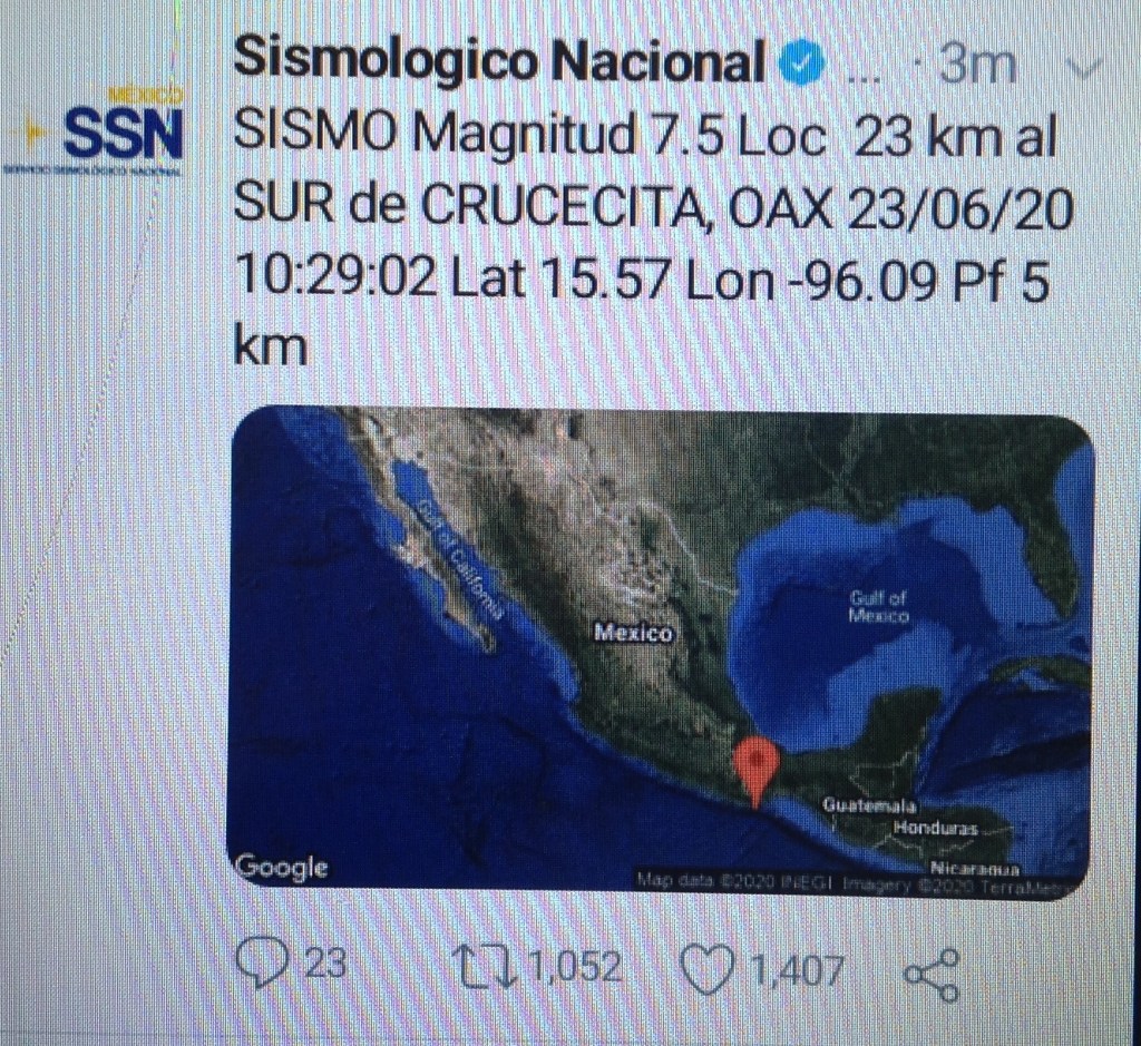 Reporta Sismológico Nacional sismo de 7.5