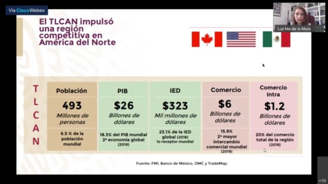 Por su parte, al intervenir en el Webinar “Relevancia del T-MEC y las oportunidades que brinda al desarrollo del Estado de México”, la Subsecretaria de Comercio Exterior de la Secretaría de Economía, Luz María de la Mora, resaltó que muchas empresas mexiquenses tienen posibilidades de integrarse a cadenas de proveeduría.