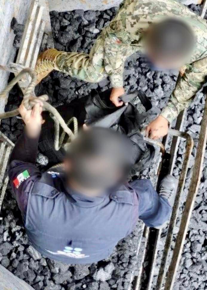El personal de la aduana de Lázaro Cárdenas solicitó la colaboración de la Marina Armada de México y de la Fiscalía General de la República (FGR), para realizar la búsqueda en el embarque de carbón donde fueron localizadas maletas negras con 140 paquetes ocultos.