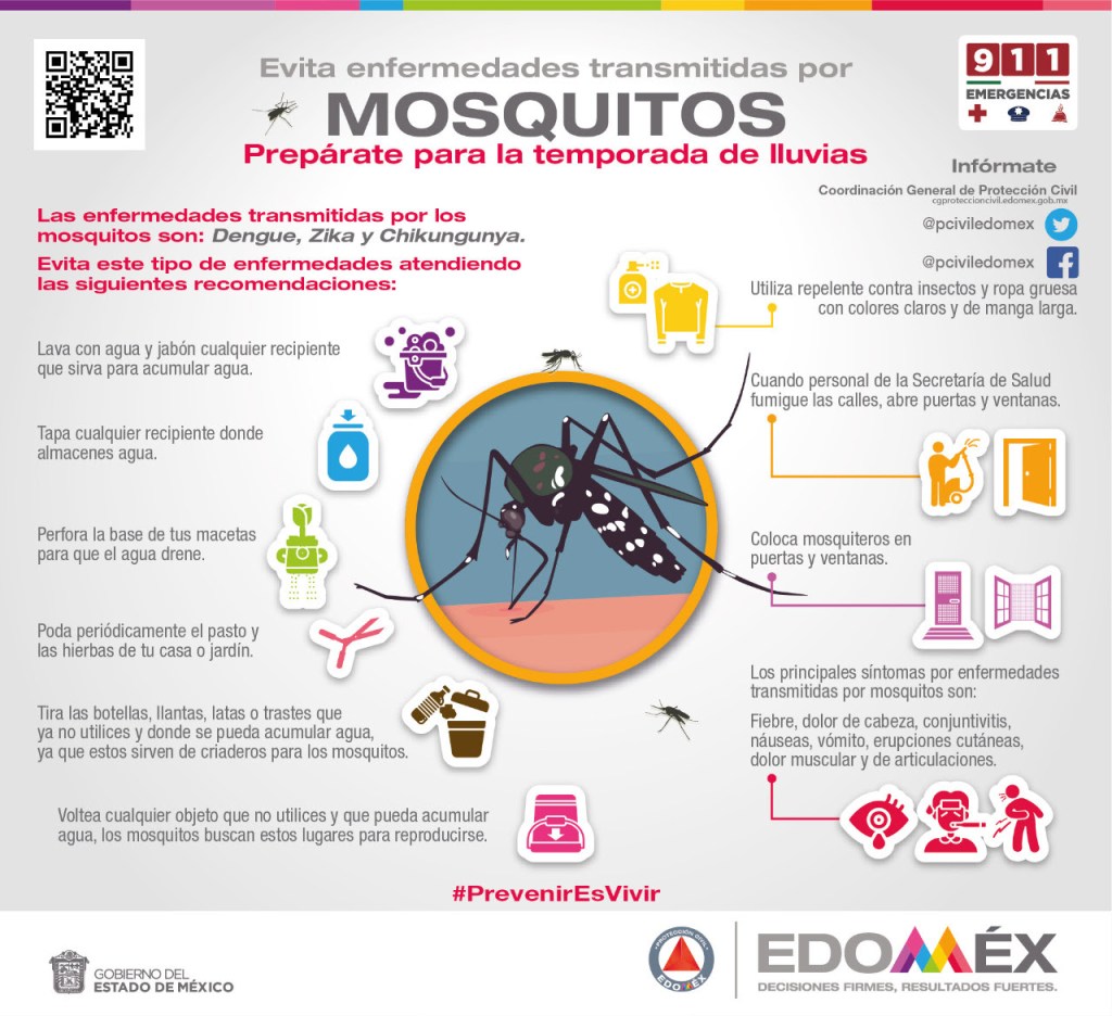 Toluca, Estado de México, 16 de julio de 2020. La Coordinación General de Protección Civil del Estado de México, cumpliendo las instrucciones del Gobernador Alfredo Del Mazo Maza de cuidar la salud y la vida de los mexiquenses y con el objetivo de evitar la propagación de enfermedades transmitidas por los mosquitos, emitió una serie de recomendaciones para prevenir Dengue, Zika y Chikungunya.