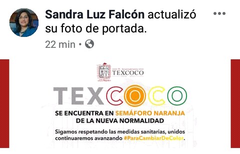 Texcoco, Edomex. La presidenta municipal de Texcoco Sandra Luz Falcón Venegas a través de su cuenta de facebook ha anunciado la transición hacia el color naranja respecto al semáforo epidemiológico durante la tarde de este lunes.