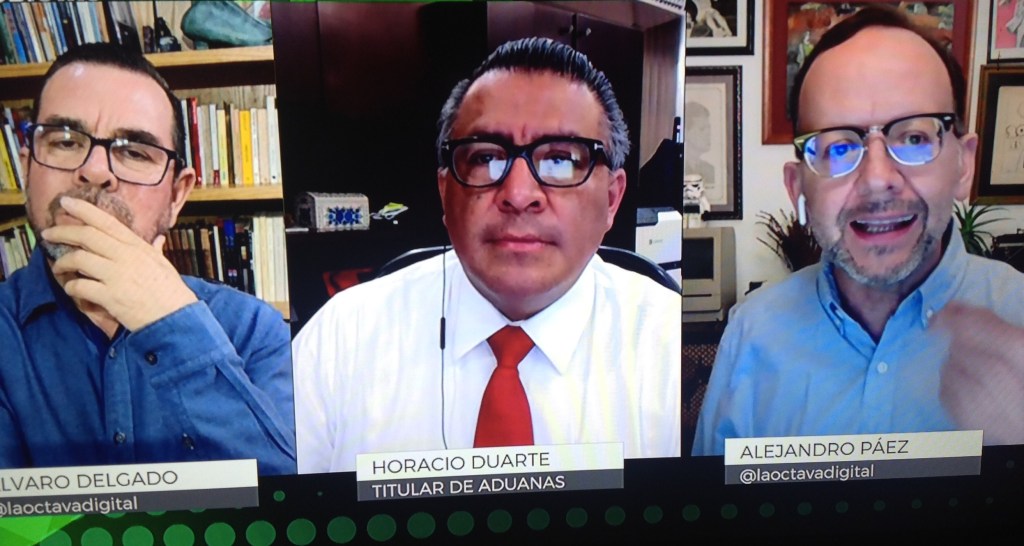 CDMX. En entrevista para el programa de análisis «Los Periodistas» conducido por Álvaro Delgado y Alejandro Páez Varela, Horacio Duarte Olivares, Administrador General de Aduanas (AGA), declaró que actualmente se está combatiendo en las aduanas el contrabando «bronco», que consiste en el ingreso de mercancías lícitas pero que no pagan impuestos así como el contrabando de combustible (los negros), que está afectando el mercado de hidrocarburos en el país.