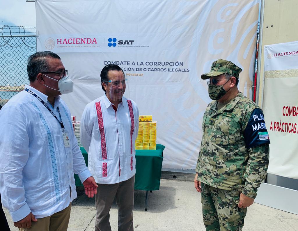 Veracruz. El Administrador General de Aduanas, Horacio Duarte Olivares encabezó la destrucción de 31 millones 100 mil cigarros no aptos para el consumo y pretendían ser ingresados y comercializados de manera ilegal en México.