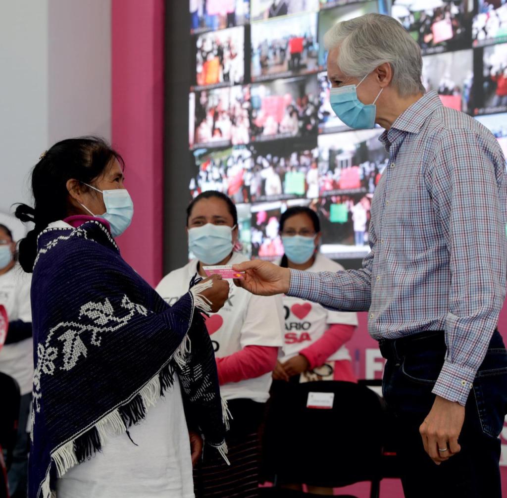 Señaló que por la pandemia por COVID-19 no se pueden realizar eventos masivos, sin embargo, cuidando la salud de las beneficiarias de este programa, se entregan las tarjetas en planteles educativos y en casas, siempre cuidando las medidas de sanidad, esto con la finalidad de que Salario rosa siga llegando a los hogares que más lo necesitan.