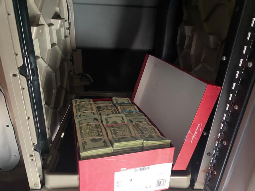 En la búsqueda a detalle se detectó una caja de zapatos que contenía 189 mil 960 dólares; mientras que durante el peritaje correspondiente efectuado por la Policía Federal Ministerial se encontró, en otro punto del vehículo, un paquete más con 269 mil 955 dólares. Lo asegurado