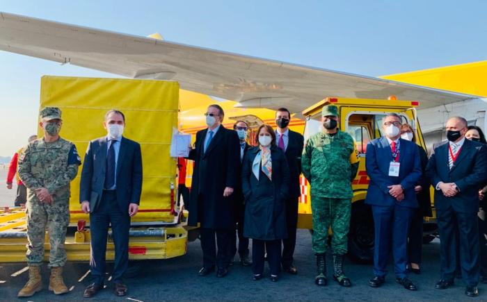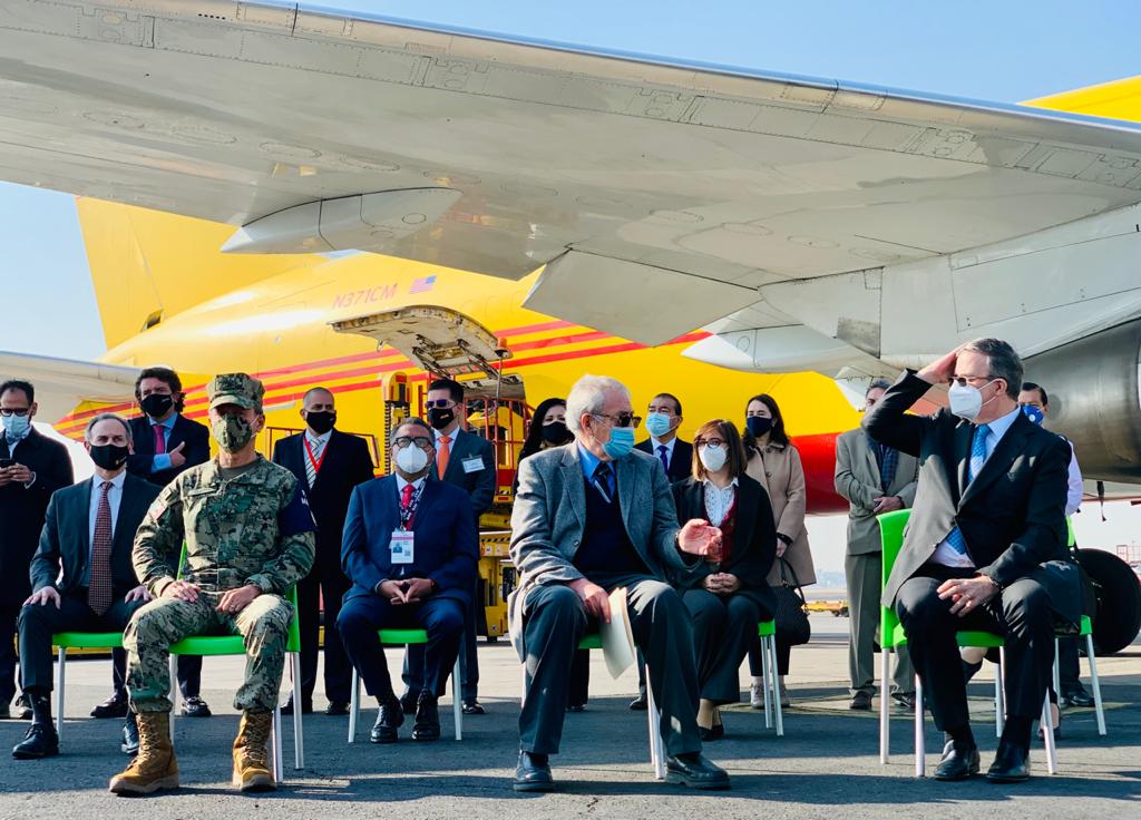 Durante el arribo de la aeronave el titular de Aduanas Horacio Duarte Olivares acompañado del canciller Marcelo Ebrard, titular de la Marina y del ejército mexicano, el secretario de Salud así como el subsecretario López-Gatell constataron la llegada de las vacunas que serán aplicadas en primer lugar a los trabajadores del sector salud mexicano.