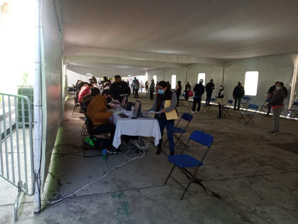 Por ello se solicitó el apoyo de los directivos del Centro Escolar Nezahualcóyotl para instalar carpas y sillas, tambien se instaló un túnel sanitizador, los contribuyentes deben usar cubrebocas, se toma la temperatura y se les pide limpien sus manos con gel antibacterial, como medidas sanitarias básicas para que los contribuyentes puedan realizar su trámite respetando el distanciamiento social recomendado.
