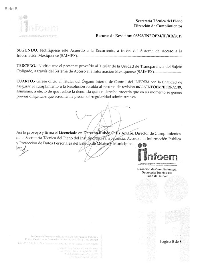 Aquí compartimos el documento completo del proceso ante el instituto de transparencia: