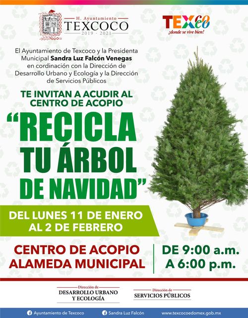 “Los invito a participar en el acopio anual de árboles de navidad, recordemos que esta campaña se realiza con el propósito de darles otro uso a los pinos, reciclando y dando una segunda vida a los arbolitos”, expresó la presidenta municipal Sandra Luz Falcón Venegas al arrancar esta campaña.