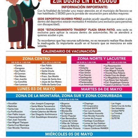 1 mayo, 2021 Antac Noticias Del 3 al 5 de mayo se aplicará la segunda dosis contra el Covid-19 a adultos mayores en Texcoco