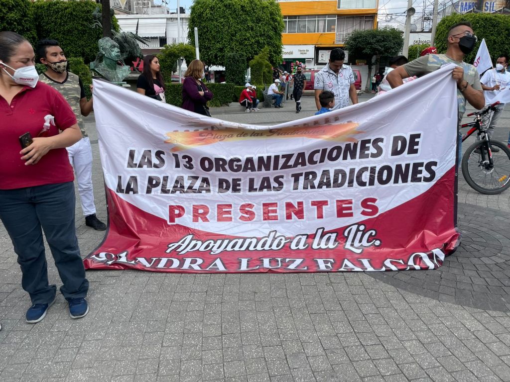 Quien caminó con los integrantes de La Unión de Comerciantes Nezahualcóyotl, A.C., los de La Plaza bicentenario, la organización de la plaza de Las Tradiciones, Quetzalcoatl, La Plaza de la Cultura entre otras que organizaron esta marcha en apoyo.