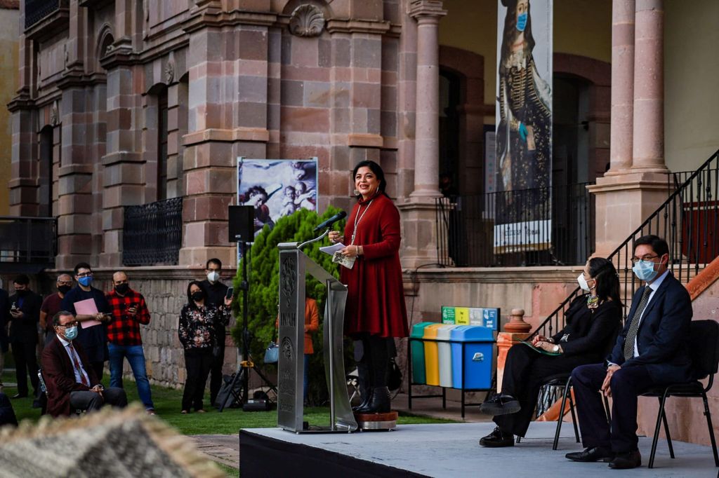 Acompañada del coordinador nacional de Museos y Exposiciones del INAH, Juan Manuel Garibay López; el director general del Instituto Zacatecano de Cultura “Ramón López Velarde”, Alfonso Vázquez Sosa; el alcalde de Guadalupe, César González Navarro, y la directora del Museo de Guadalupe, Rosa María Franco Velasco; la encargada de la política cultural de nuestro país destacó que esta magna exposición es una muestra de “así como López Velarde ha viajado a través de todo el mundo por medio de sus letras, hoy vienen piezas de todo el orbe a dialogar con su pensamiento y con su legado”.