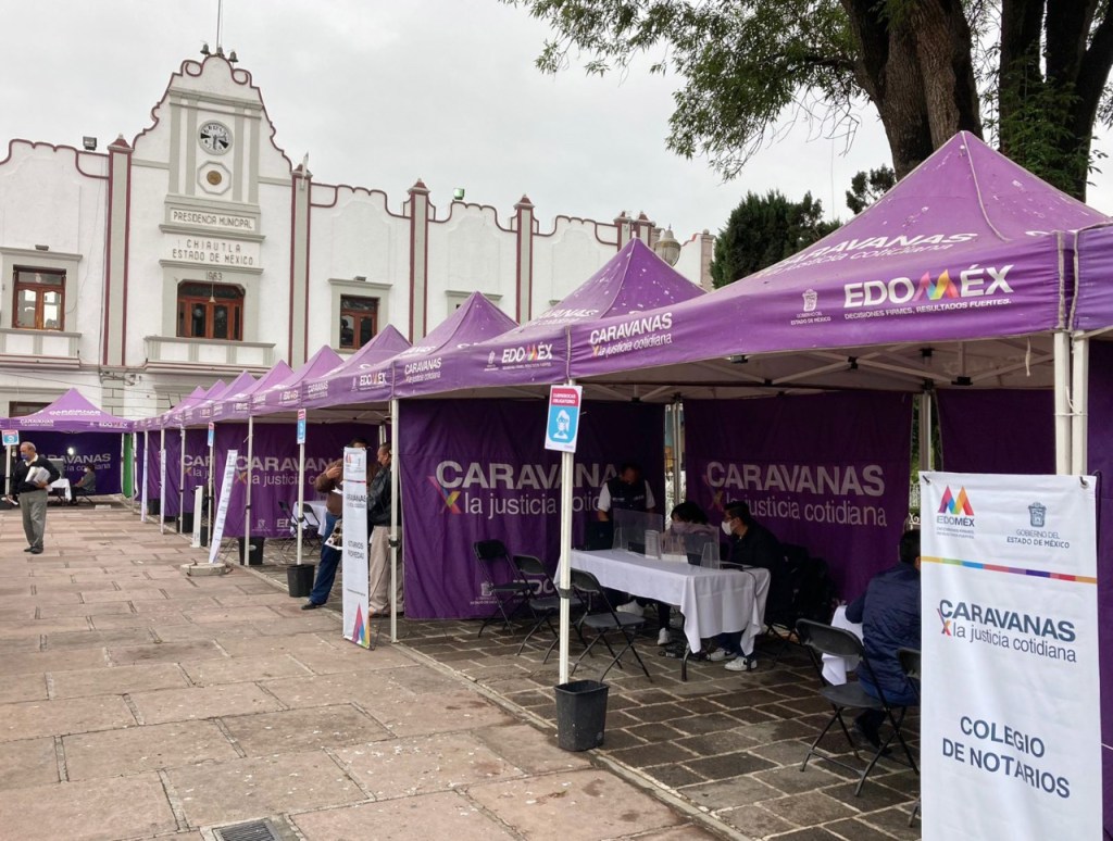 Chiautla, Edomex. Las Caravanas por la Justicia Cotidiana continúan su recorrido itinerante por las zonas más alejadas de los Centros Administrativos del Estado de México, para acercar a las familias mexiquenses trámites y servicios gratuitos que les garanticen certeza jurídica, para que puedan realizar sus proyectos de vida.